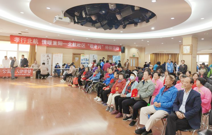 10月23日上午,北航社区在思源楼多功能厅举办了“孝行北航,情暖重阳”敬老月特别活动。社区居委会主任刘同华、社区养老互助组志愿者、养联体爱心服务商代表、银行人员、派出所民警及社区居民等150余人参加活动。