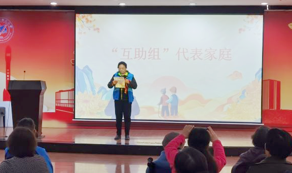 北航老年互助组代表张爱珍老师上台与居民们分享北航“老年互助组”的暖心故事。