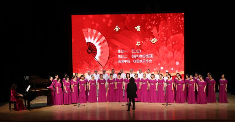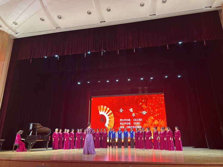 北航社区欢乐合唱队以一曲《江山》唱出了共产党人把老百姓的冷暖记挂心间,把老百姓的事看得比天大,与老百姓的恩情比海深的深情厚意。并通过几代人经久传唱的《我和我的祖国》表达了对伟大祖国的深沉依恋和衷心祝福。