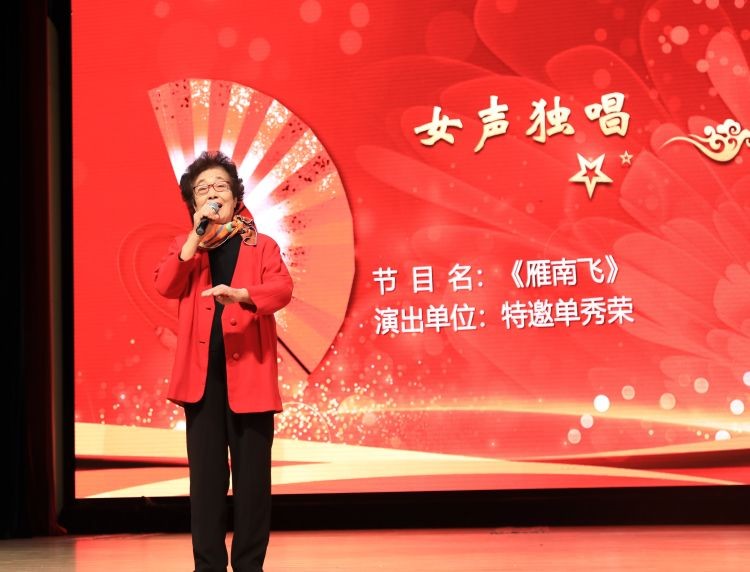 大家耳熟能详的《雁南飞》、《沂蒙颂》、《归心似箭》等歌曲影响了几代人。万众期待,本次艺术节特别有幸邀请到了中国歌剧舞剧院著名女高音歌唱家、国家一级演员77岁的单秀荣老师。现场气氛达到沸点。