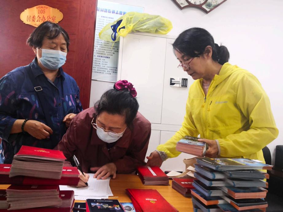 社区居委会发动楼门洞长领取《消防安全知识手册》、《电动自行车安全使用指南》,分发到每家每户居民手中。