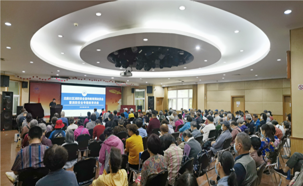 社区办、居委会、业委会、社区物业、全体楼门洞长逾180人参加社区消防安全宣传教育周动员会暨消防安全专题教育讲座。会上,通报了近期北航社区火险情况、存在消防安全隐患的楼宇情况,海淀区双榆树消防救援站工作人员进行了消防安全知识讲座,与会居民纷纷表示触动很深、受益匪浅。
