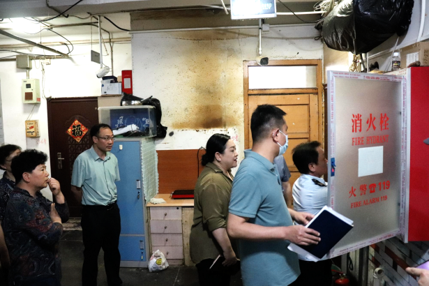 会后,王雪薇一行对学四楼楼道物料堆放、消防设备设施管理情况等进行了现场指导检查。
