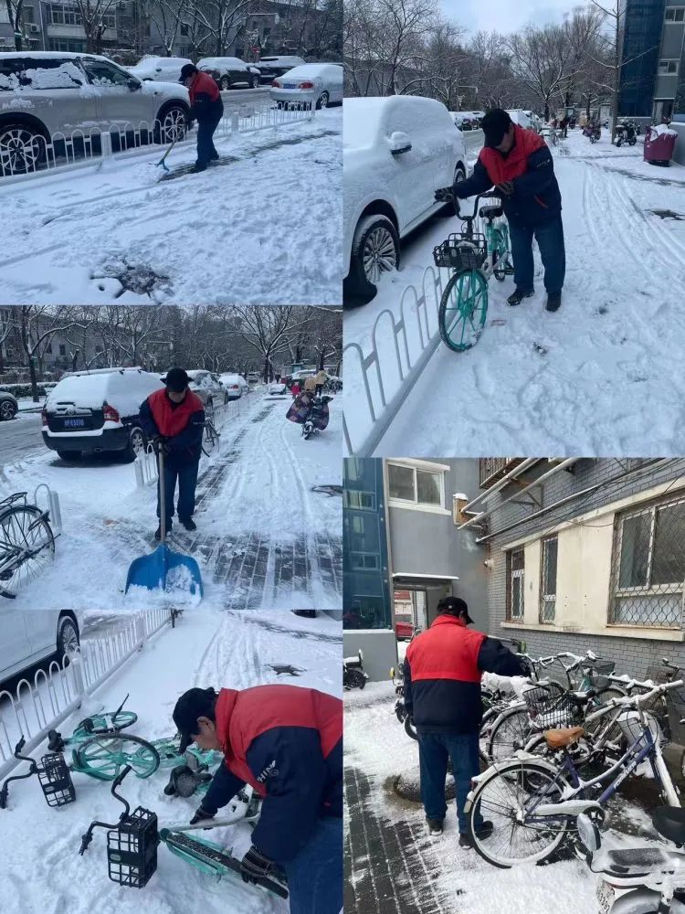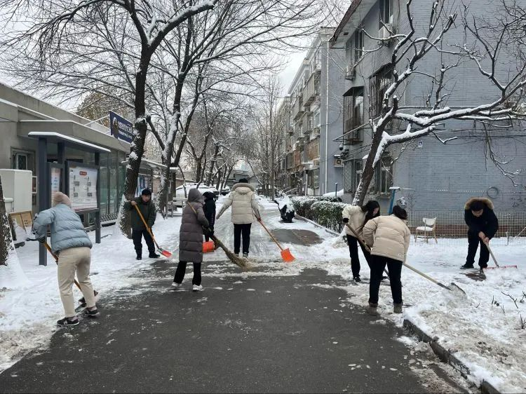 北航社区办、物业人员在辖区内积极开展清扫冰雪工作。