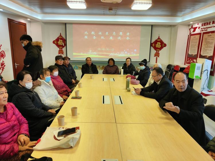2024年1月11日,北航社区召开了志愿者服务队座谈会、手工编织组座谈会、文艺座谈会三场座谈会,北航社区办主任、社区党委书记梁国栋,北航社区居委会主任刘同华出席会议。