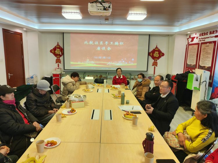 第二场座谈会是“手工编织组座谈会”。刘主任介绍北航社区手工编制组成立13年来,为北航社区的文化交流活动做出了很大贡献。2023年6月台湾高雄里长参访团来北航社区开展交流活动,把手工编织组老师们的作品赠送给台湾同胞,增强了两岸同胞的宝贵友谊,为未来两地社区继续顺畅沟通夯实了基础。
