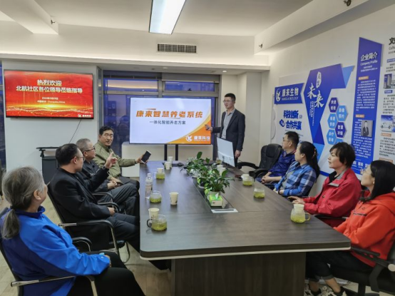 在康来总部及研发中心,考察组认真听取讲解介绍,全面了解康来集团在项目建设、运营管理模式以及配套设施建设等方面的有效做法和先进经验;在现场演示环节,双方就社区智慧养老软件开发及维护、线上线下服务有机融合、各方力量协同联动及资源整合等方面问题展开充分研讨,对如何运用信息化手段实现智慧养老进行充分交流。